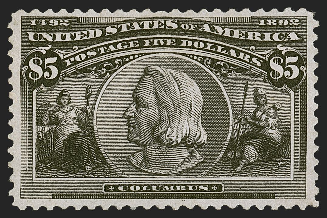 US STAMPS # 245 $5 COLUMBIAN MINT OG H CAT. $2,500 LOT #5764-1