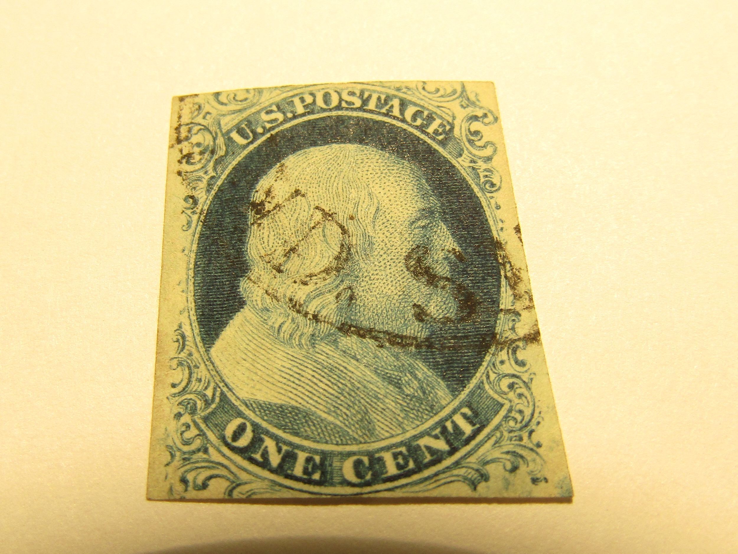US Stamps, Scott # 9 used, Black Town Cancel, with Certificate, Type IV 1851,