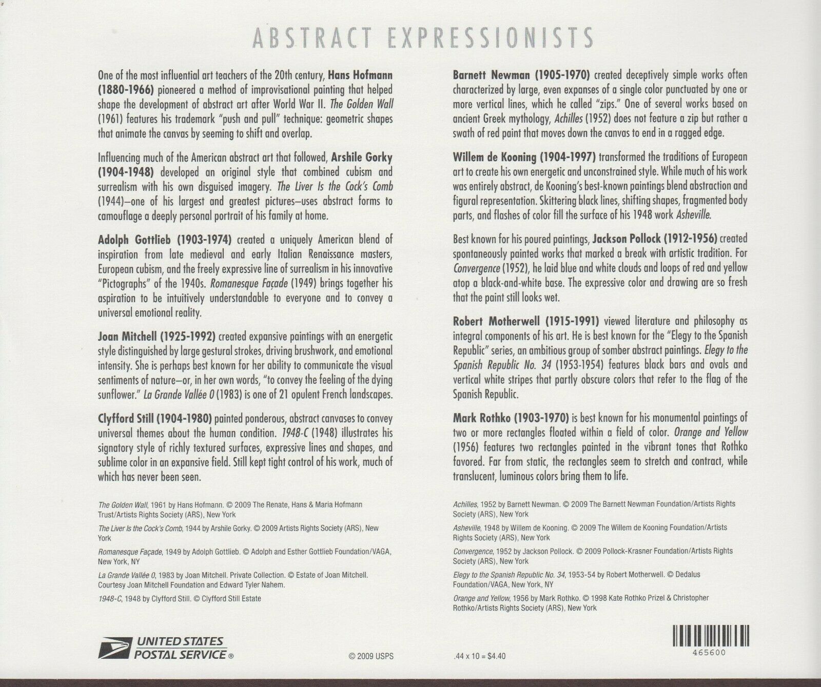 US,4444,ABSTRACT EXPRESSIONISTS,FULL SHEET COLLECTION,MINT NH OG,VF