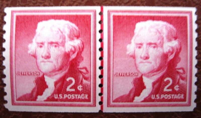 USA 1055a: 2c Jefferson, coil line pair, small holes, MNH, VF