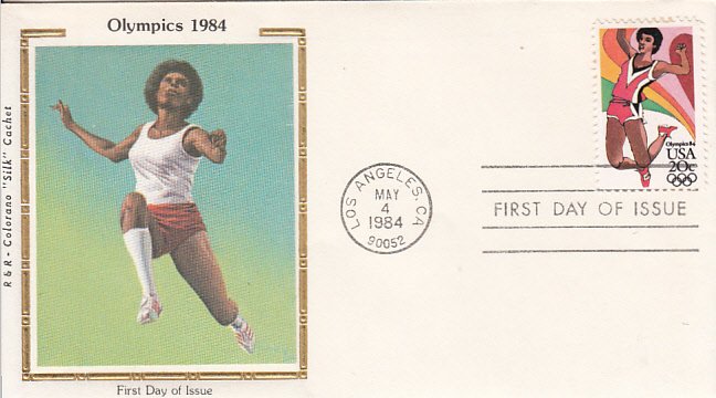 USA 1984 FDC Sc 2083 20c Track and Field Olympics R & R Colorano Silk Cachet