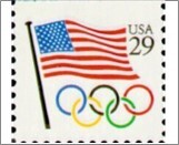 USA 1991 Used SC2528 Flag with Olympic Rings Multicolor 29 Cent 199*STOCK IMAGE*