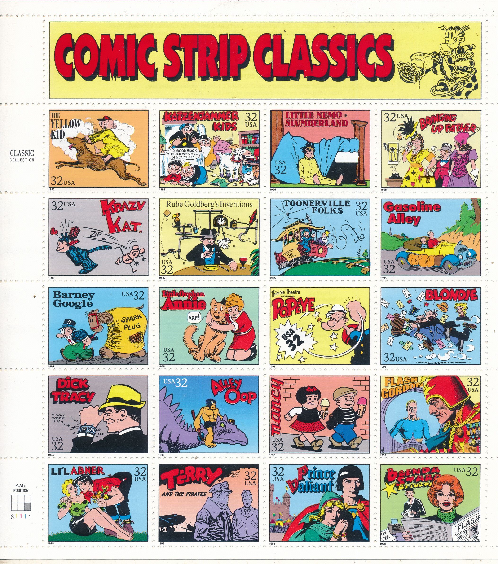 USA 1995 COMIC STRIP CLASSICS SHEET MNH