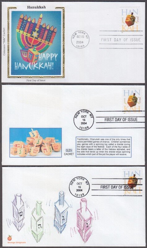 USA # 3880.1 - 3 DIFF FDC for HANUKKAH