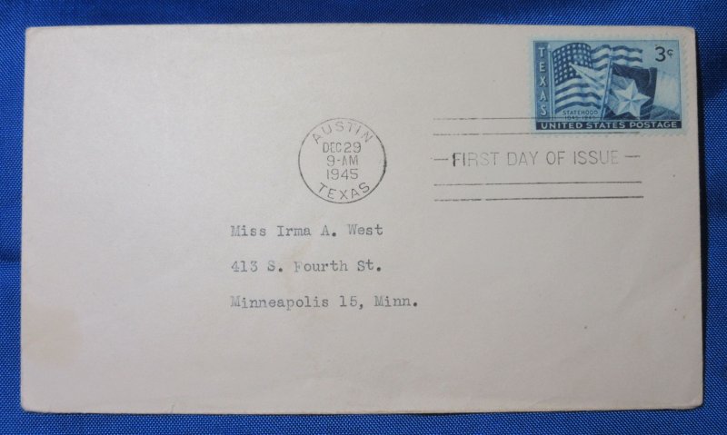 USA Scott 938 FDC Texas 100th Anniv. 1945 3 cent