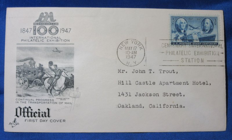USA Scott 947 FDC International Philatelic Exhibition 1947 3 cent Cachet