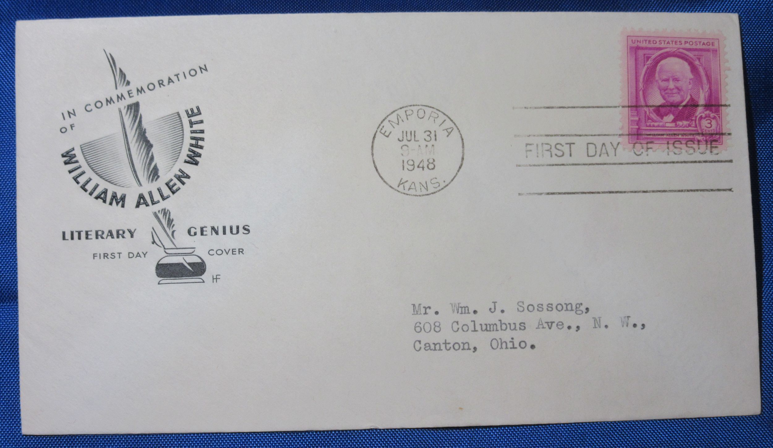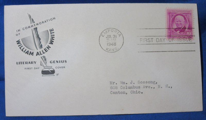 USA Scott 960 FDC William A. White 1948 3 cent Cachet