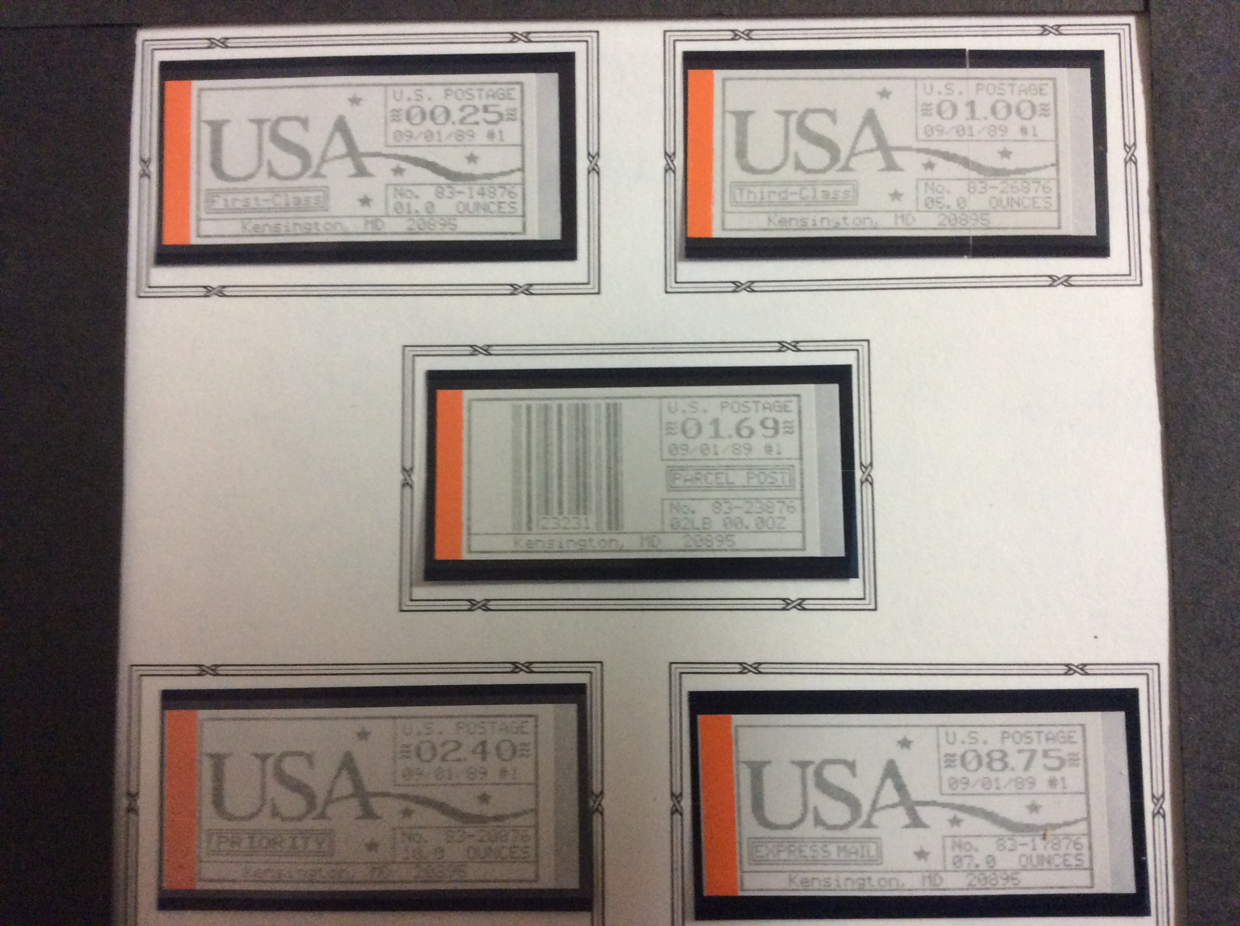 These were issued in Kensington, MD by Machine Number 83. The Scott catalog info is for items CVP16a, CVP17a, CVP18a, CVP19a and CVP20a.We desire to be your best source for quality stamps at very reasonable prices. L & S USA Stamps sells Mint No Hinge (MNH), Mint (front only) and Used stamps from the United States.