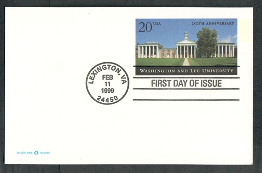UX302 Washington and Lee Univ. Unaddressed postal card FDC with no cachet