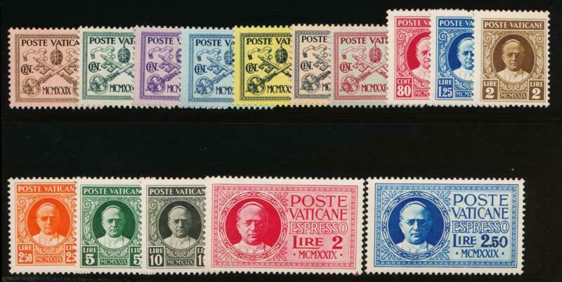 VATICAN 1-13,E1 E2 MINT NH 1929 1ST SET