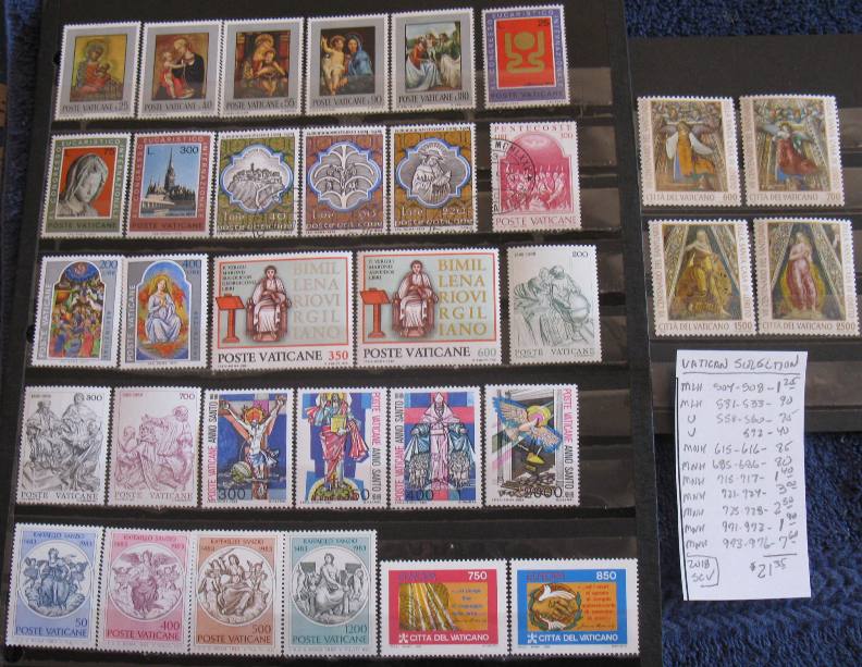 Selection of stamps from Vatican City Scott #'s 504//976. Total 2018 SCV=$21.35