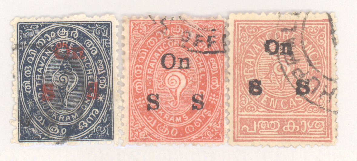India- Feudatory States, Travancore, Scott #o1-o2_o9, Used