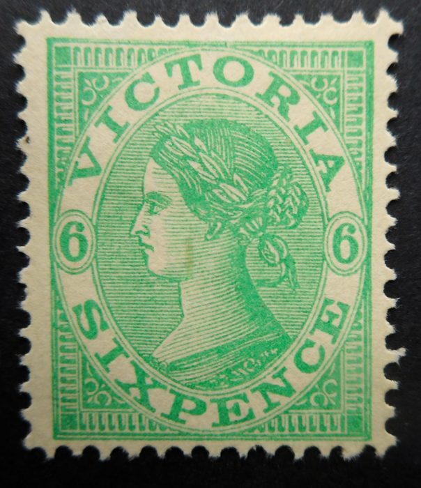 The 6 pence stamp of the series of 1901. No gum, and no trace of a cancel. Priced and offered as a used stamp. Looks mint. F/VF centering.