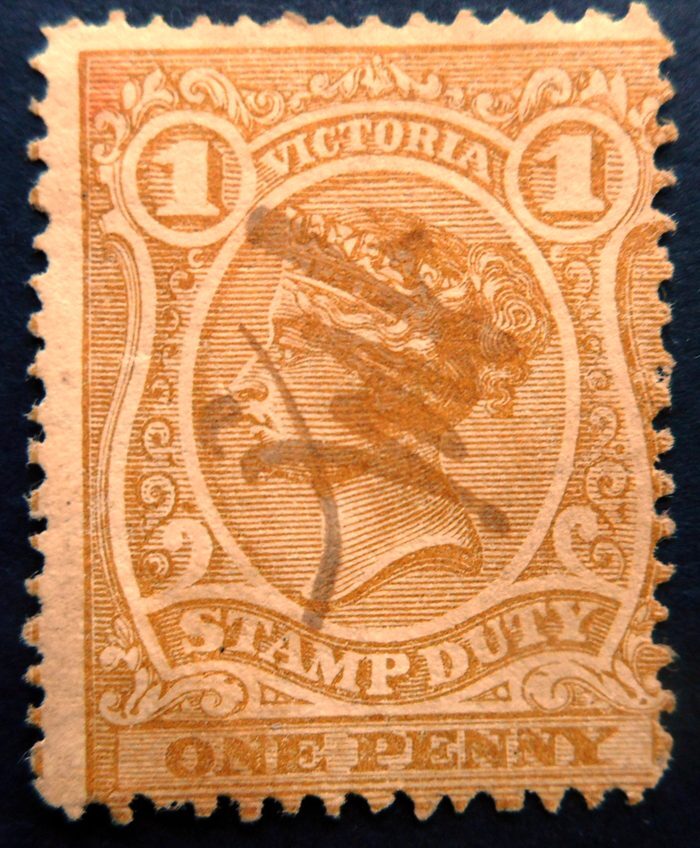 Victoria, Scott AR32, Used. Revenue stamp with an indistinct manuscript cancel. Probable fiscal use. Perfs cut the design on 2 sides.Seller Information
