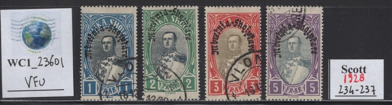 WC1_23601.ALBANIA. Valuable 1928 KINGZOG ovpt. set. Sc. 234-238. Used