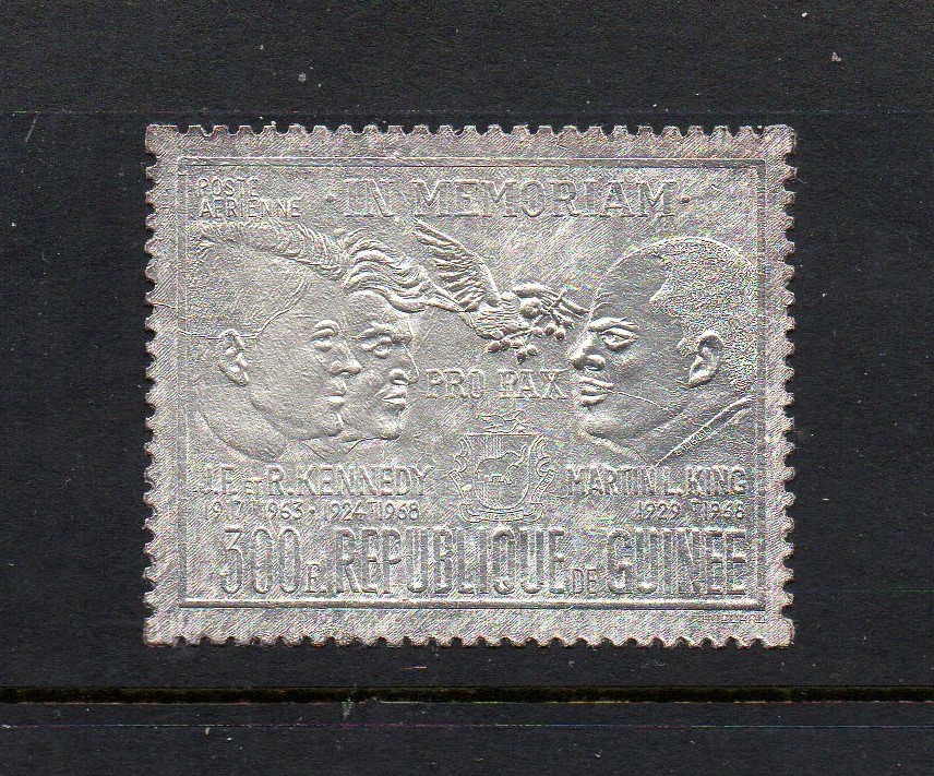 Silver foil stamp showing John and Robert Kennedy and Dr. Martin Luther King, Jr.Seller Information