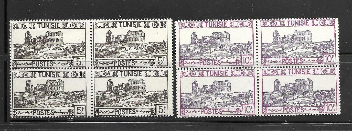 Two from set showing mosque and olive tree in blocks of 4.