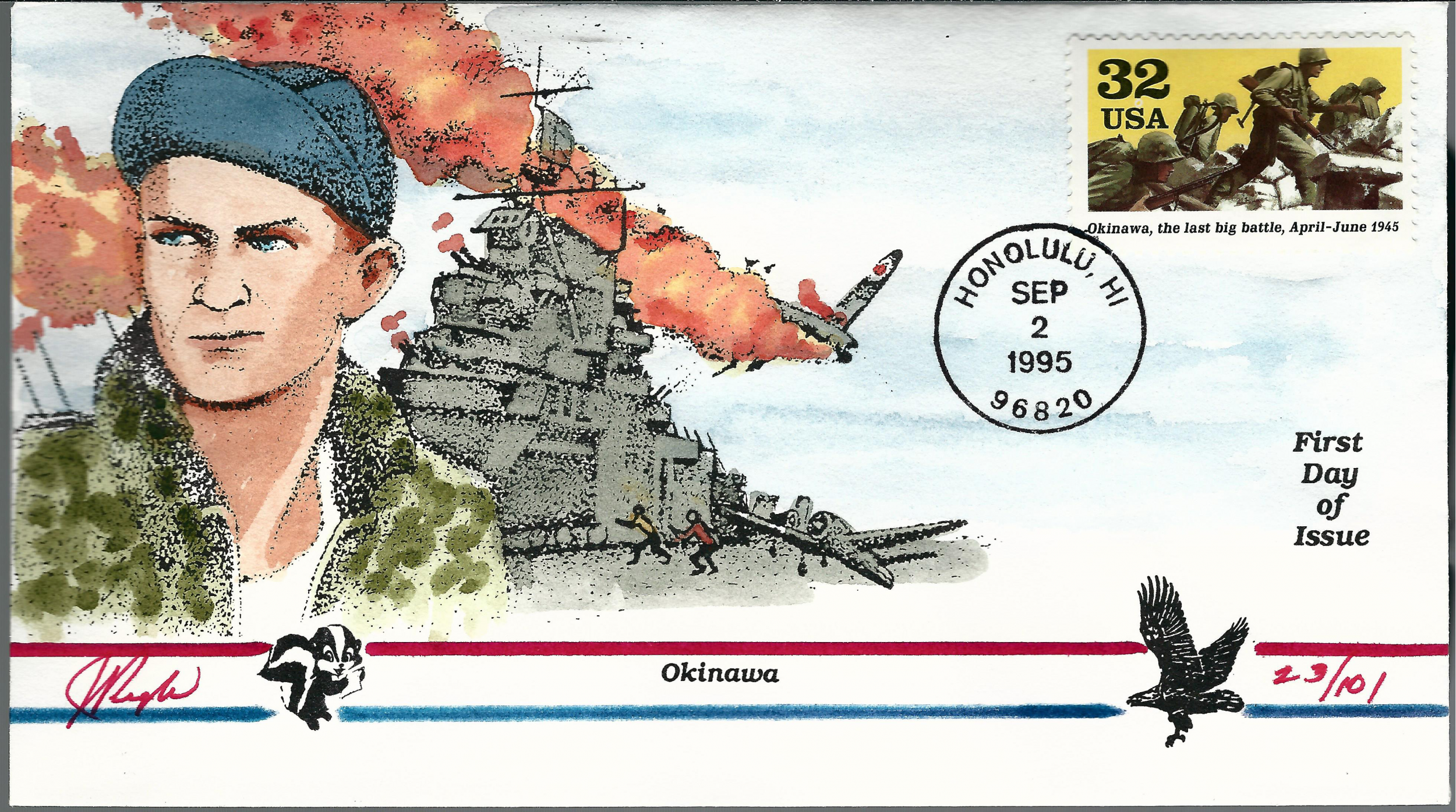 WW!! Pugh Designed and Painted Okinawa FDC-only 101 created...