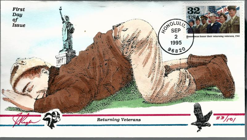 WW!! Pugh Designed and Painted Returning Veterans FDC-only 101 created...