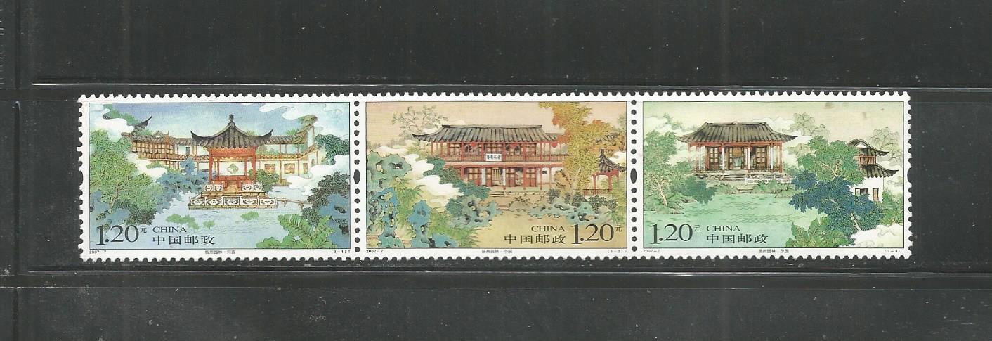#3580 a-c Peoples Republic of China Yangzhou Gardens Strip of 3 MNH