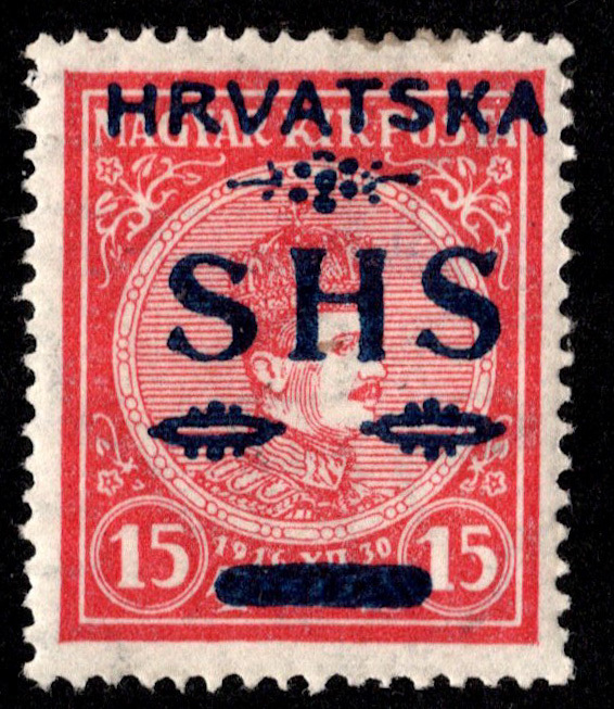 Hungary 15F Turul and Crown of Saint Stephen Overprinted Hrvatska S H S Croatia Slavonia. Unused hinged.Seller Information