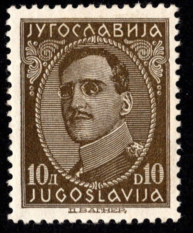 10D King Alexander. Unused hinged.