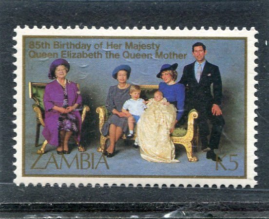 Zambia Aug.2, 1985 - QUEEN MOTHER - QUEEN ELIZABETH II - PRINCESS MARGARET - Single Perforated MNH VF - Scott Catalogue # 327Seller Information
