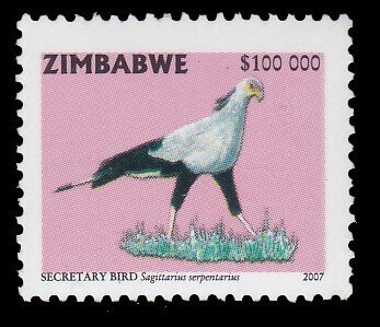 Zimbabwe, Scott #1043, 2007 Birds - Secretary Bird issue in Mint Never Hinged condition.Scott 2026 Catalogue Value $25.00