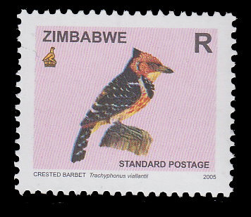 Zimbabwe, Scott #983, 2005 Crested Barbet issue in Mint Never Hinged condition.Scott 2023 Catalogue Value $13.00