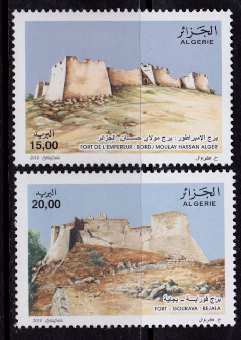Algeria #1489-90 MNH ◊ Forts ◊ 2010Where multiple quantities are shown, the image shows representative centering, and, if stamp is used, cancellations of the stock on hand.