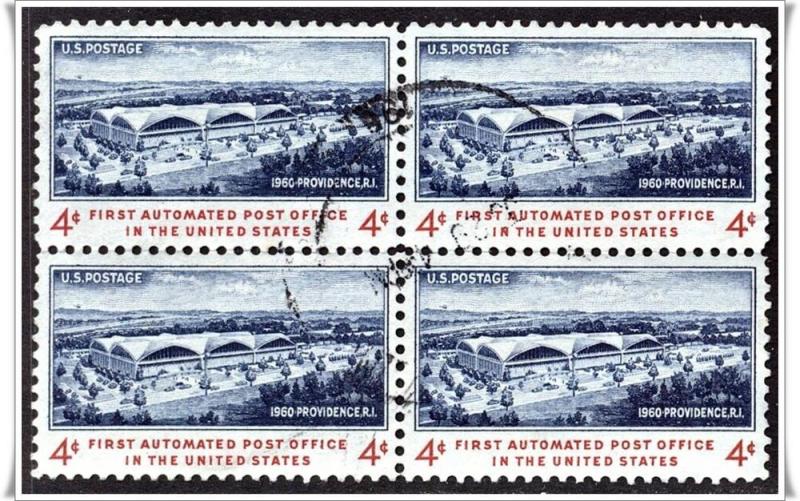 SC#1164 4¢ First Automated Post Office Block of Four (Used)