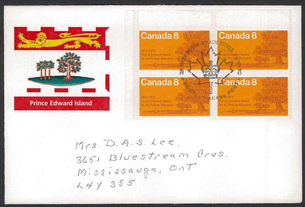 CANADA 1973 PEI Blk of 4 on Cover with Royal Train Cancel