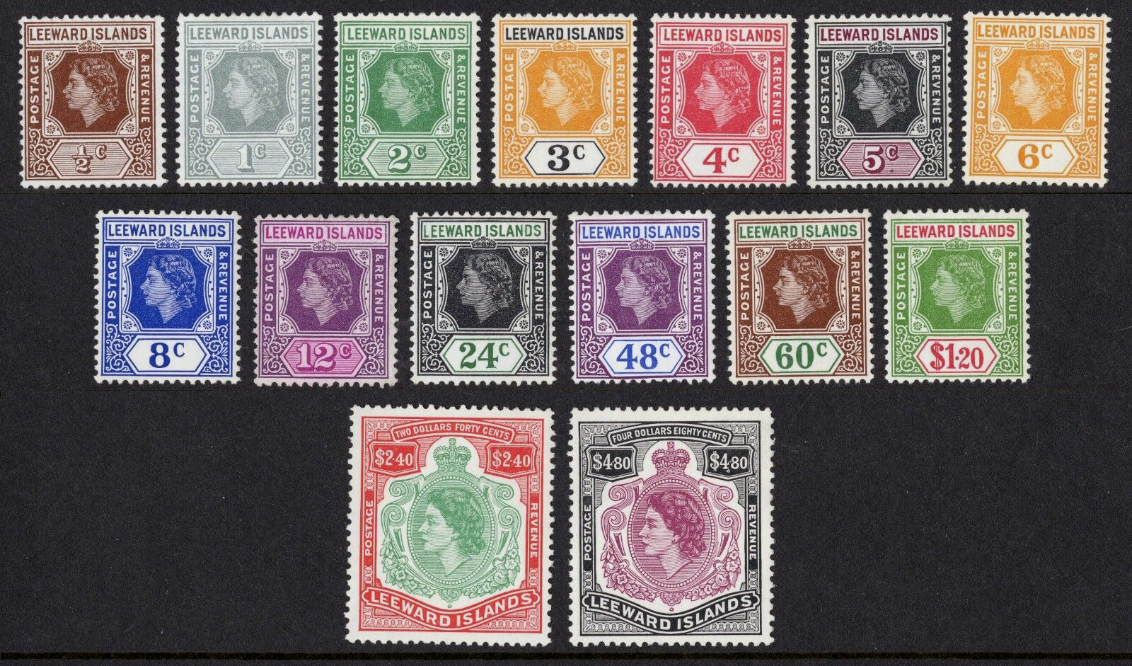 Leeward SC#133-147 - QEII completed set (1954) MNH Payment:1. Us Dollars Cash - Sent At Buyer's Risk 2. Personal checks drawn on canadian bank - allow 14 days for the check to clear the bank 3. International mo ... Read More