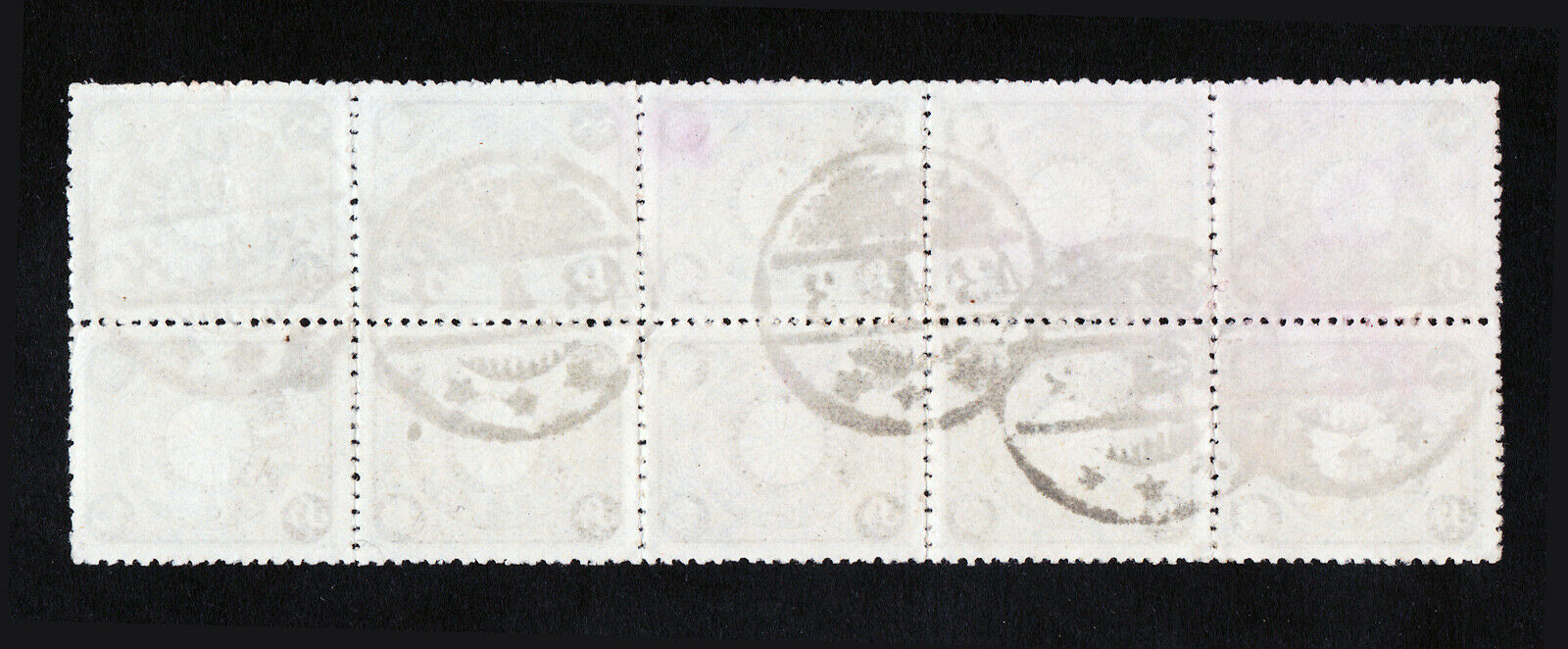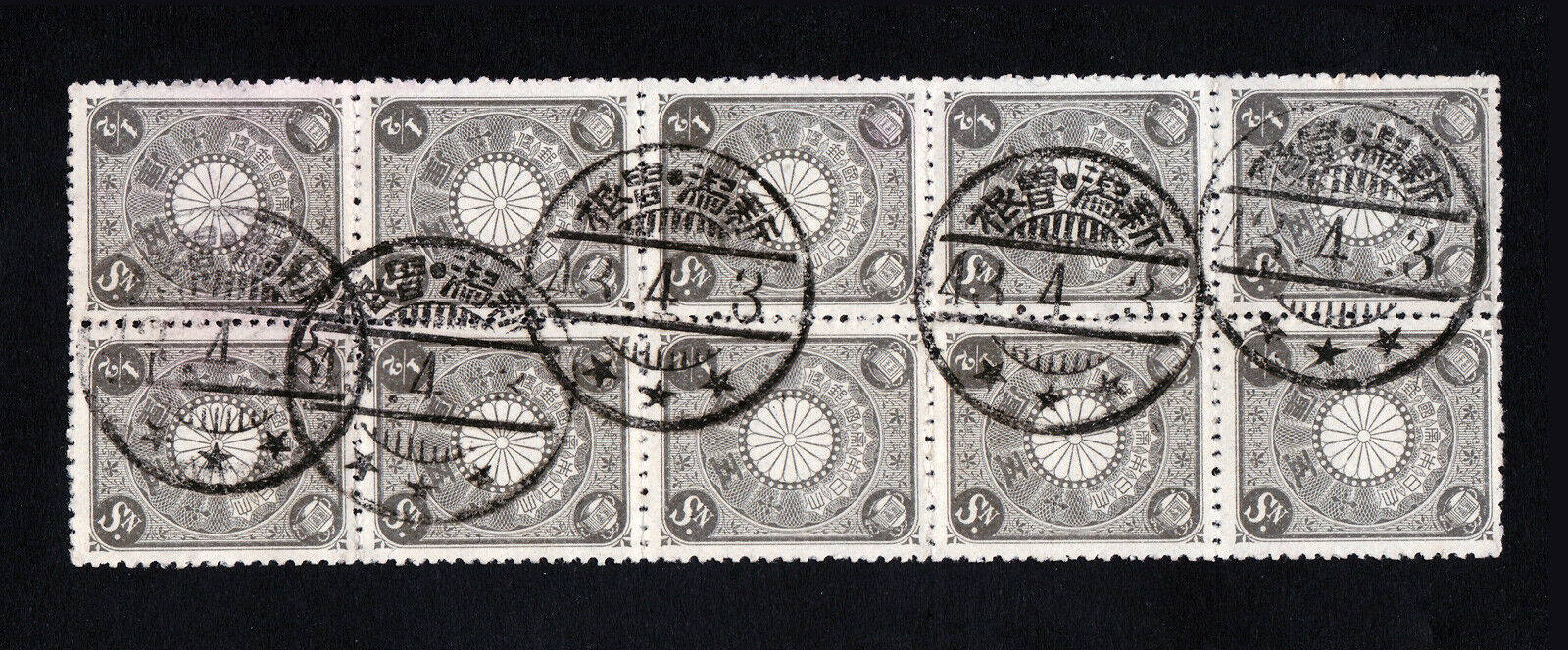Condition: Used. No gum.1901 ½ Sen Scott #92 Kiku Block of 10 ⭐ Postmark Sone, Niigata Perfecture ⭐ Meiji Era