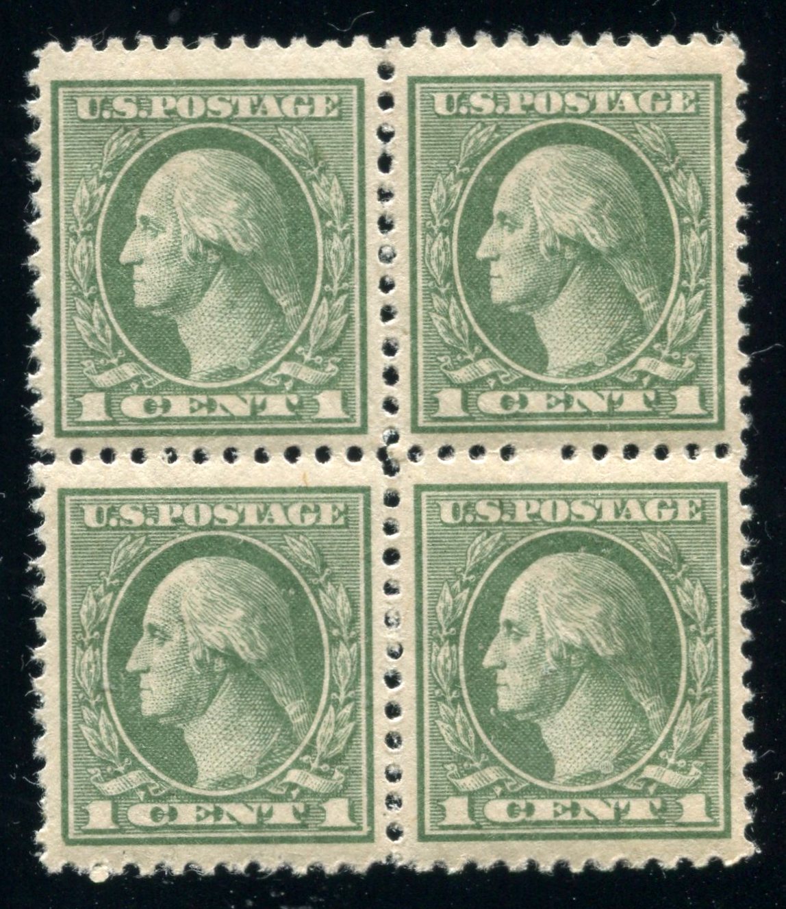 Scott # 525 - 1c Gray Green - Washington - Block of 4 - MNH