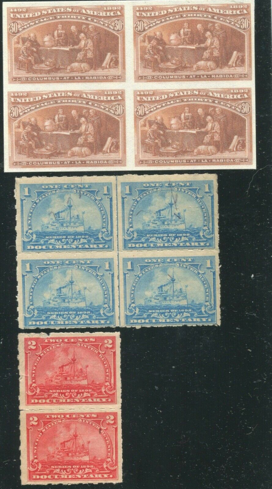 “#239 Imperf 30 cent columbian Block of 4 (Facsimile), R163 Block of 4 R164 Pair”"We Cater to the Little Guy"