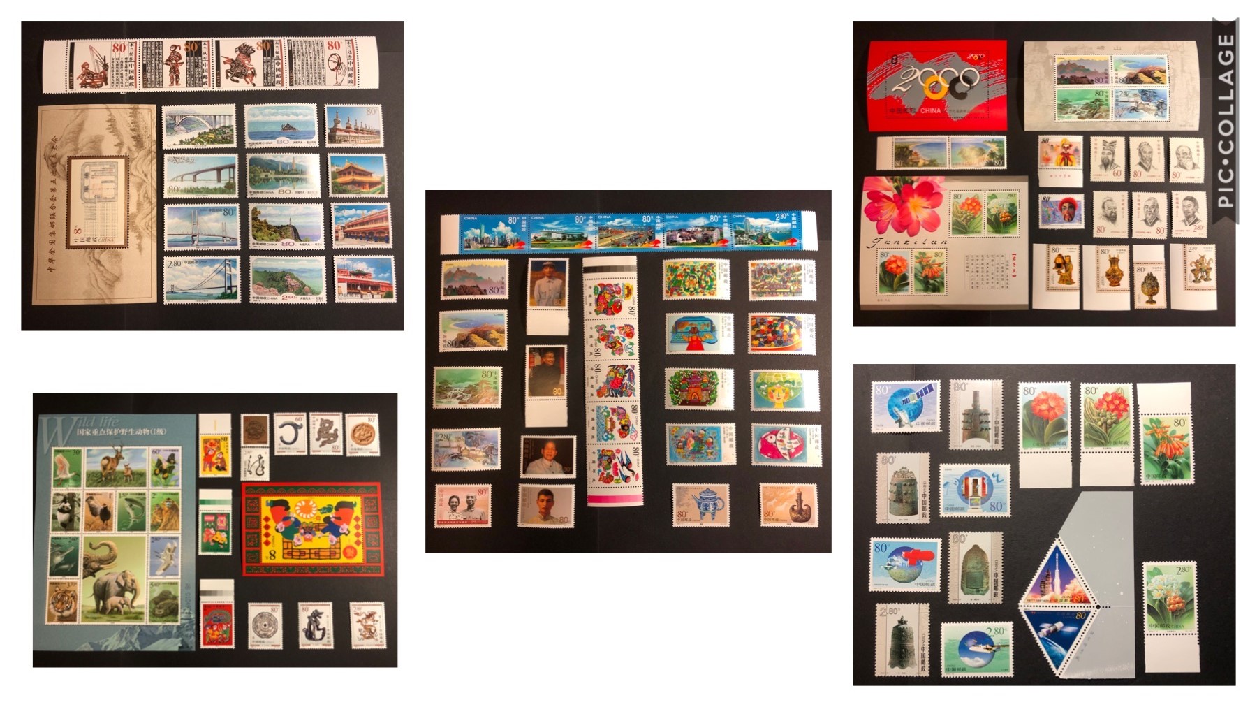 This set includes all 25 sets of stamps that were issued in 2000. (6 MS/SS, 3 stripes, 2 pairs, and 66 individual stamps). The first picture is a collage image that intend to give you a glance of what stamps are included, and the following 10 pictures show all the stamps in five groups, front and back views. In this way, you can examine the stamps better before you buy/bid. All the stamps are MNH.第一张相是组合照,方便你一眼看清所含,接着的十张相是把所有的邮票分成五组后每一组的正反面照。