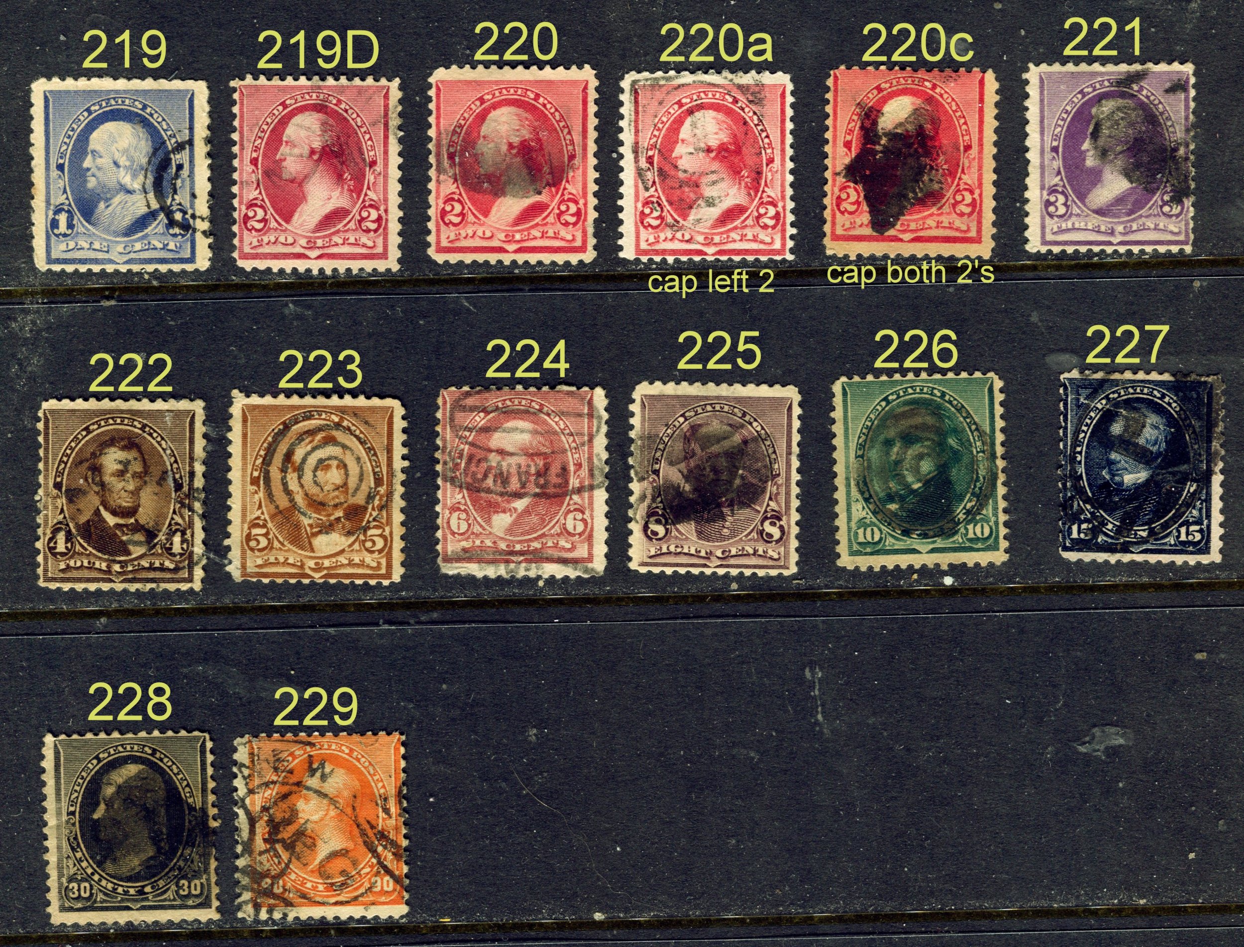 19th Century, #219-229. 14 Different