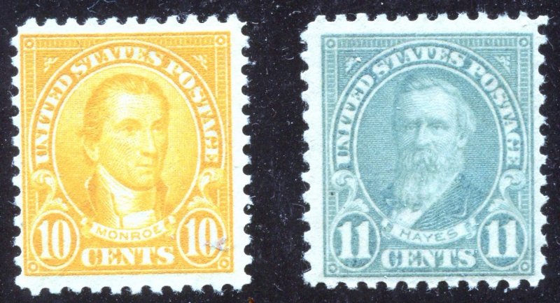 #562-563 10c Monroe 11c Hayes Mint Light hinged