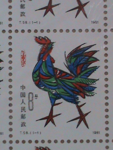 CHINA STAMPS: 1981 SC#1647 YEAR OF THE ROOSTER COMPLETE. MNH SHEET. VERYRARE.