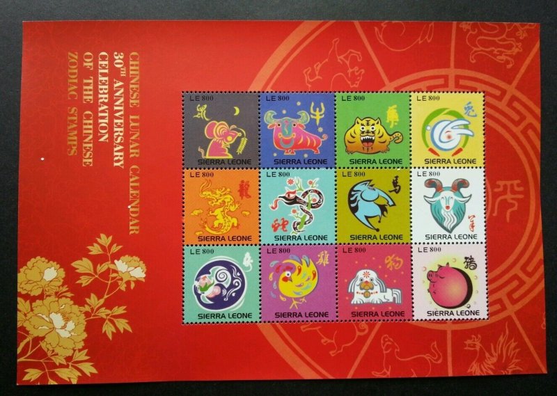 Sierra Leone 30th Anniversary Of Chinese Zodiac 2010 Lunar 十二生肖 (sheetlet) MNH