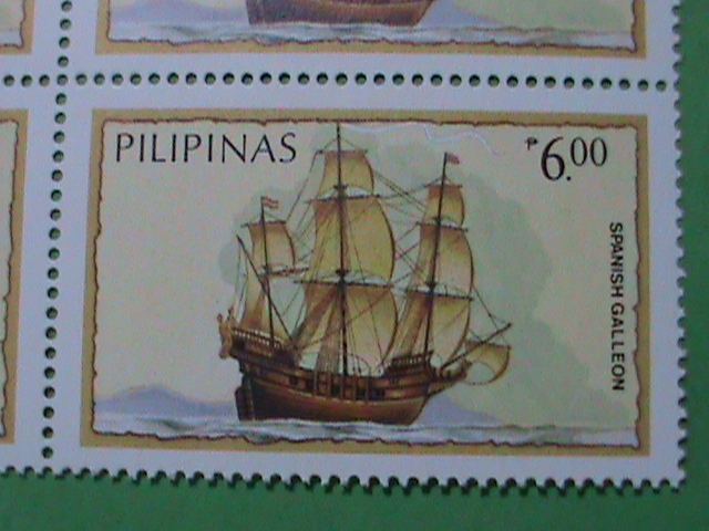 PHILIPPINE STAMP: SPENISH GALLEON SAIL SHIP-MNH STAMP BLOCK OF 4. VERY RARE.