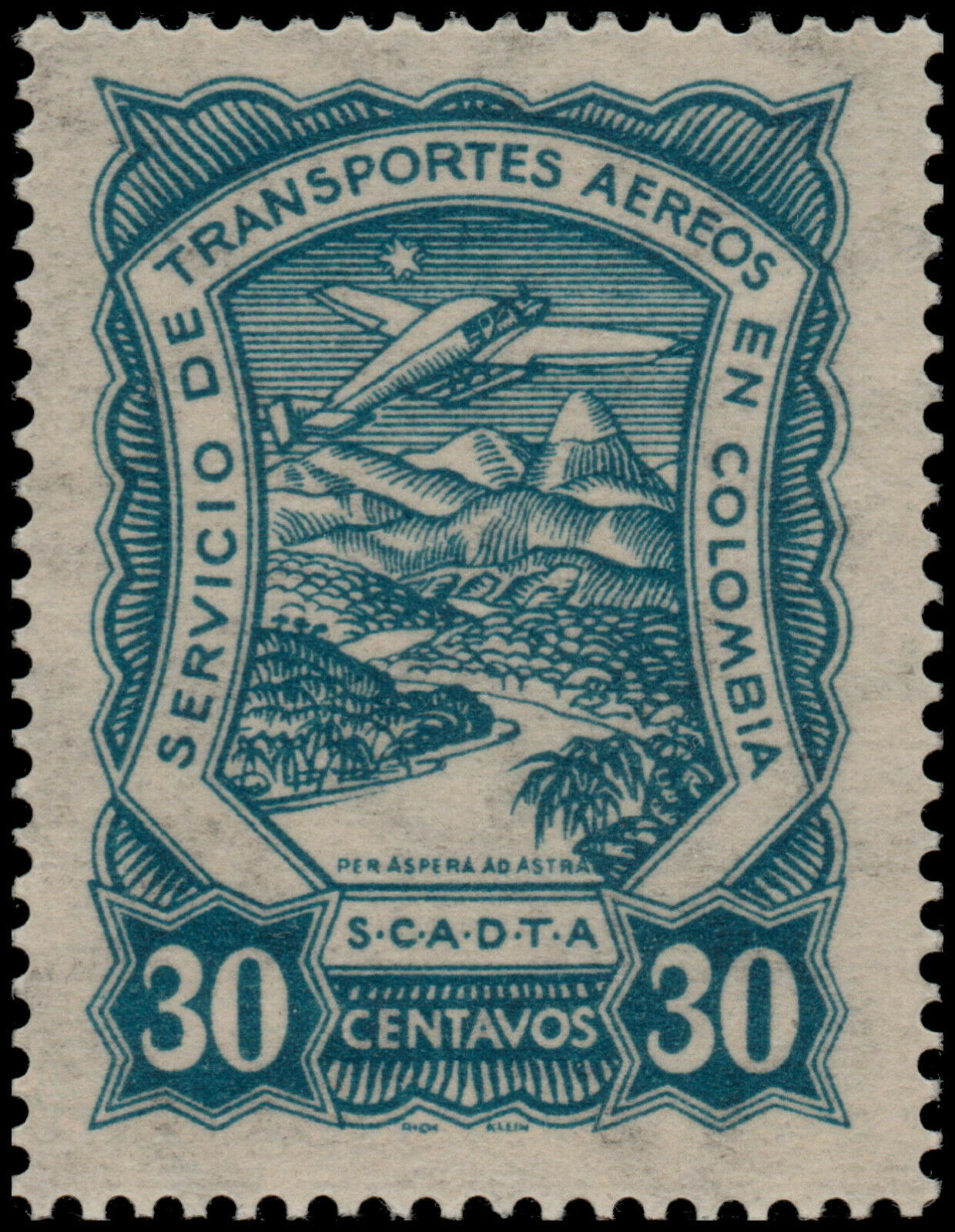 Note that is a sample picture from this stamp.We have the biggest MNH ** SCADTA stock worldwide.