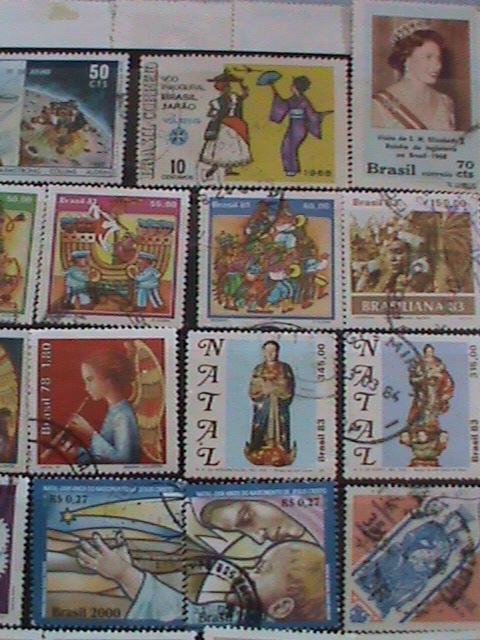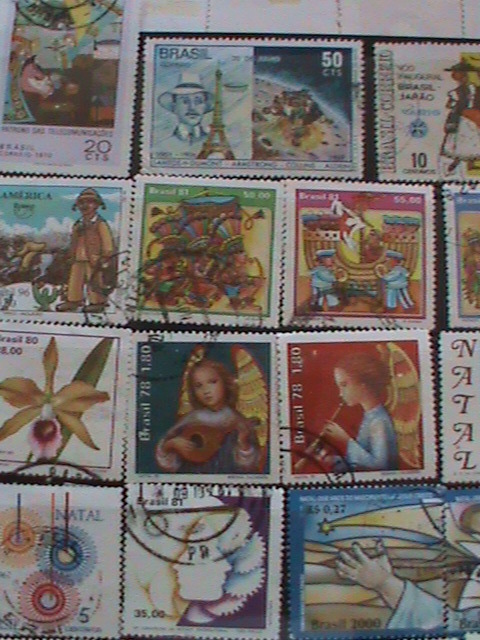BRAZIL STAMPS:34 DIFFERENT JUMBO LARGE BRAZIL USED STAMPS #BR-P HIGH VALUE