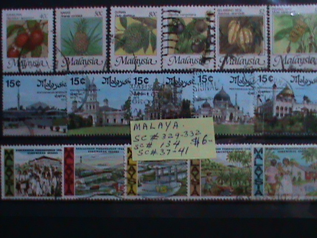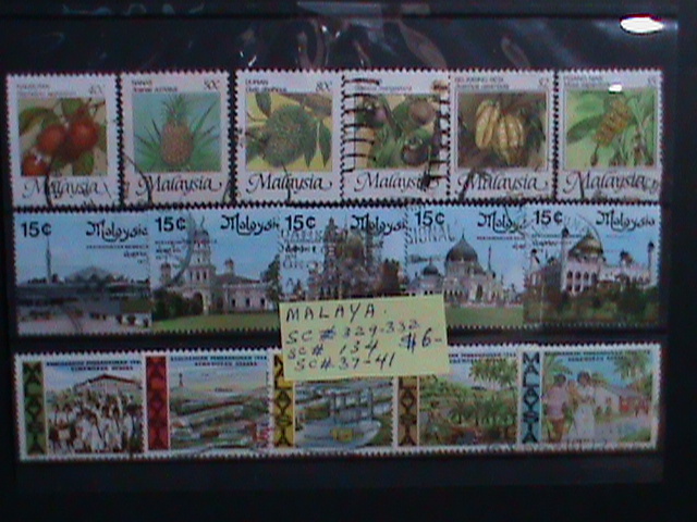 MALAYSIA: SC# 37-41, #134, #329-332 VERY OLD THREE SETS OF USED STAMPS.