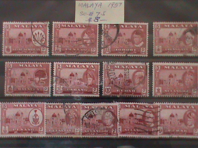 MALAYSIA STAMPS: 1957 SC#75-VERY OLD USED SETS STAMP. VERY RARE