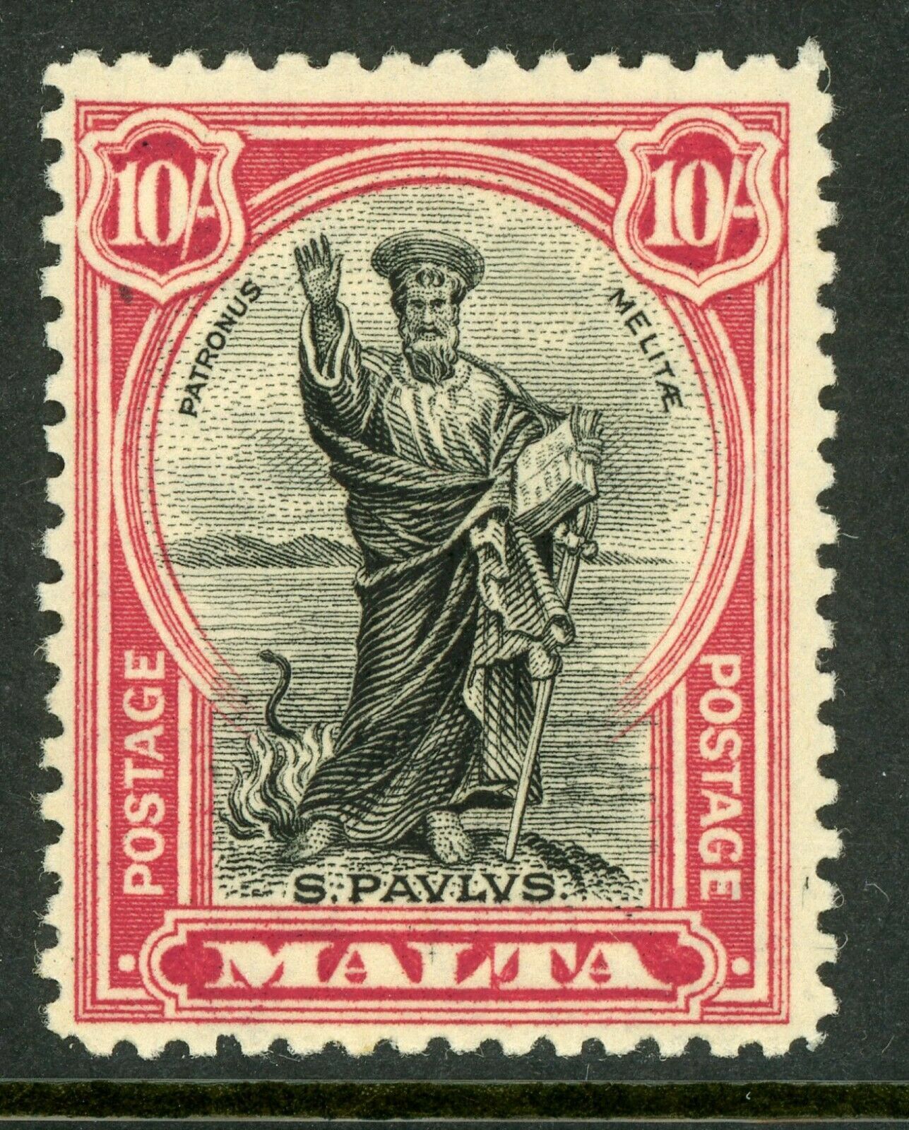 Malta 1926 "Postage" Commemoratives 10' Carmine & Black Scott 147 Mint A300