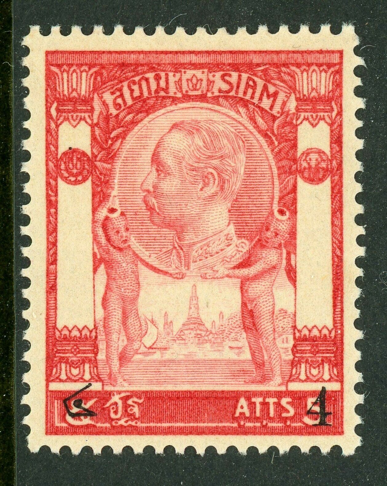 Thailand 1908 4a on 5a Carmine & Rose Scott 110 Mint T46