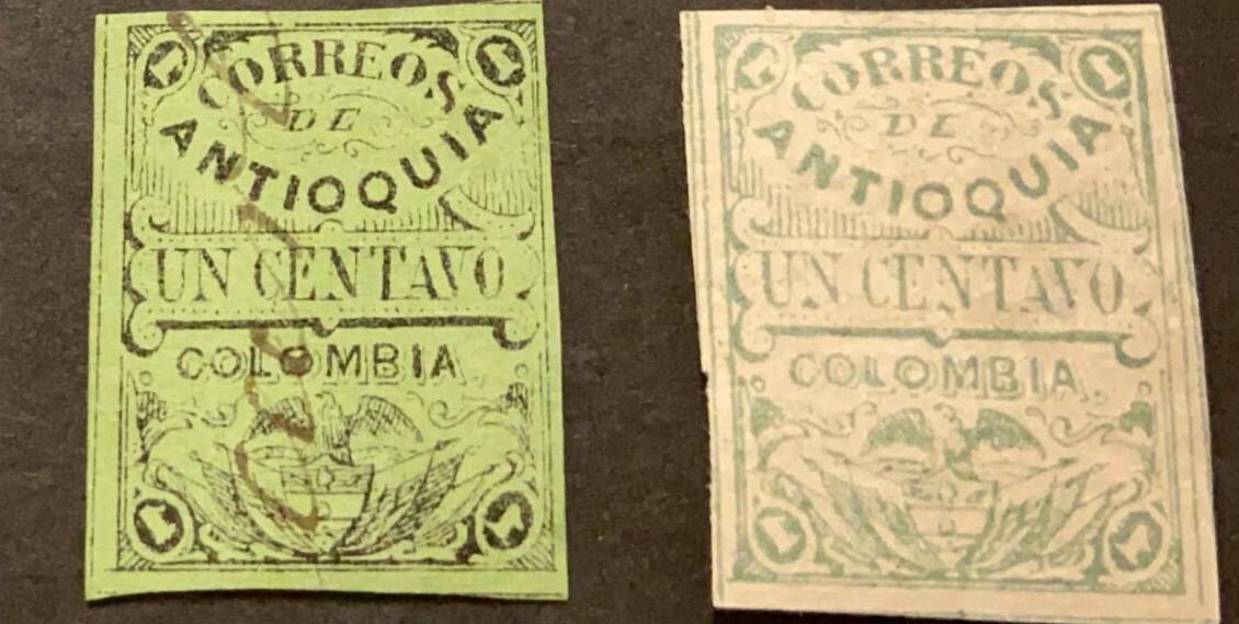 O) 1873 antioquia, colombia, coat of arms sct 12 1 c yellow green, sct 12 1c green, xfSeller Information
