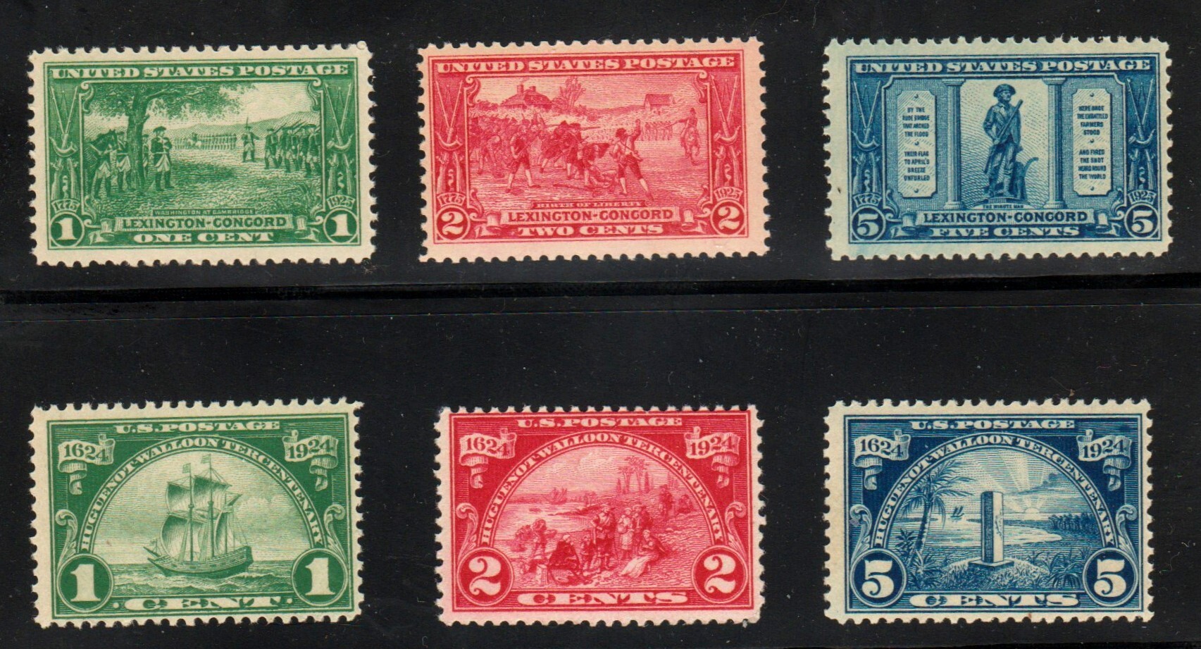 Huguenot #614-616 & Lexington #617-619 MNH OG fresh sets